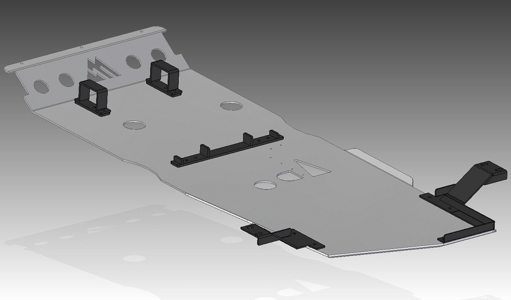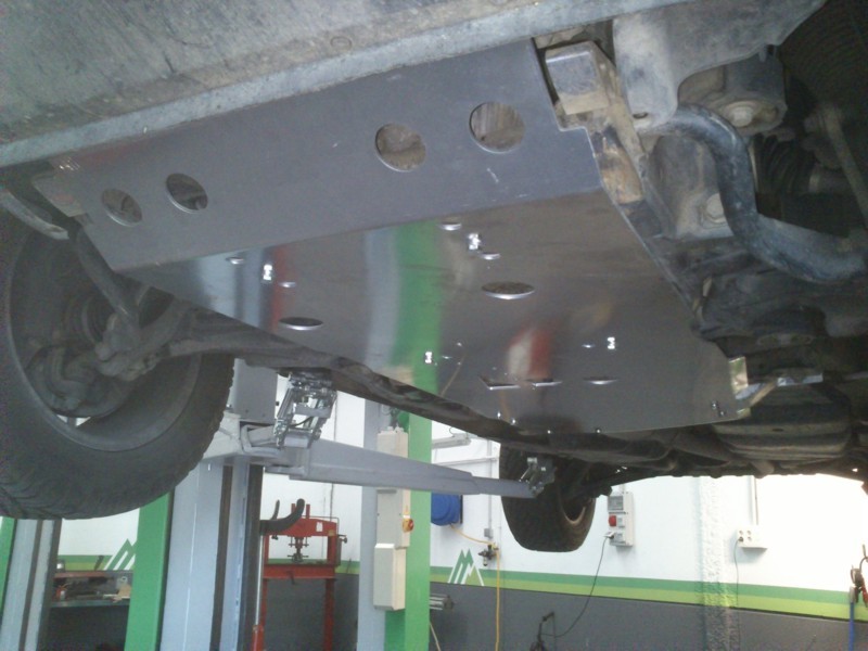 Protector de bajos fabricado en aluminio de 6mm, plegado con control numerico y cortado por láser. Protege el radiador, cárter del motor, diferencial delantero, caja de cambios y caja transfer.