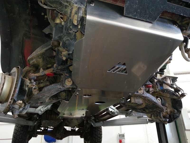 Este protector está fabricado en aluminio de alta dureza de 8mm plegado con control numerico y cortado por láser. Protege el radiador, cárter y el diferencial delantero de los impactos de las piedras y las ramas.