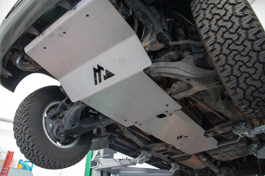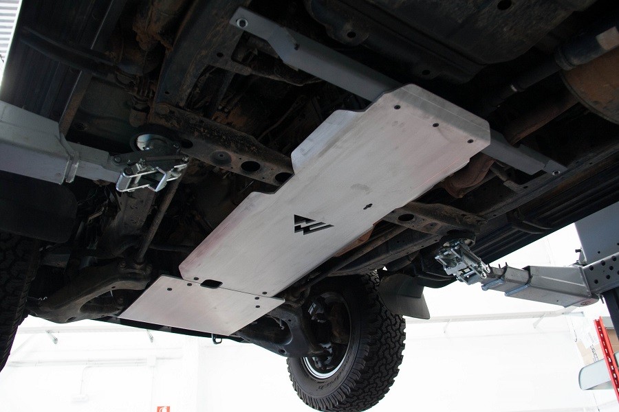Este protector está fabricado en aluminio de 8mm de alta dureza, cortado por láser y plegado en control numerico. Protege la caja de cambios y la caja transfer de los impactos de piedras, ramas, etc