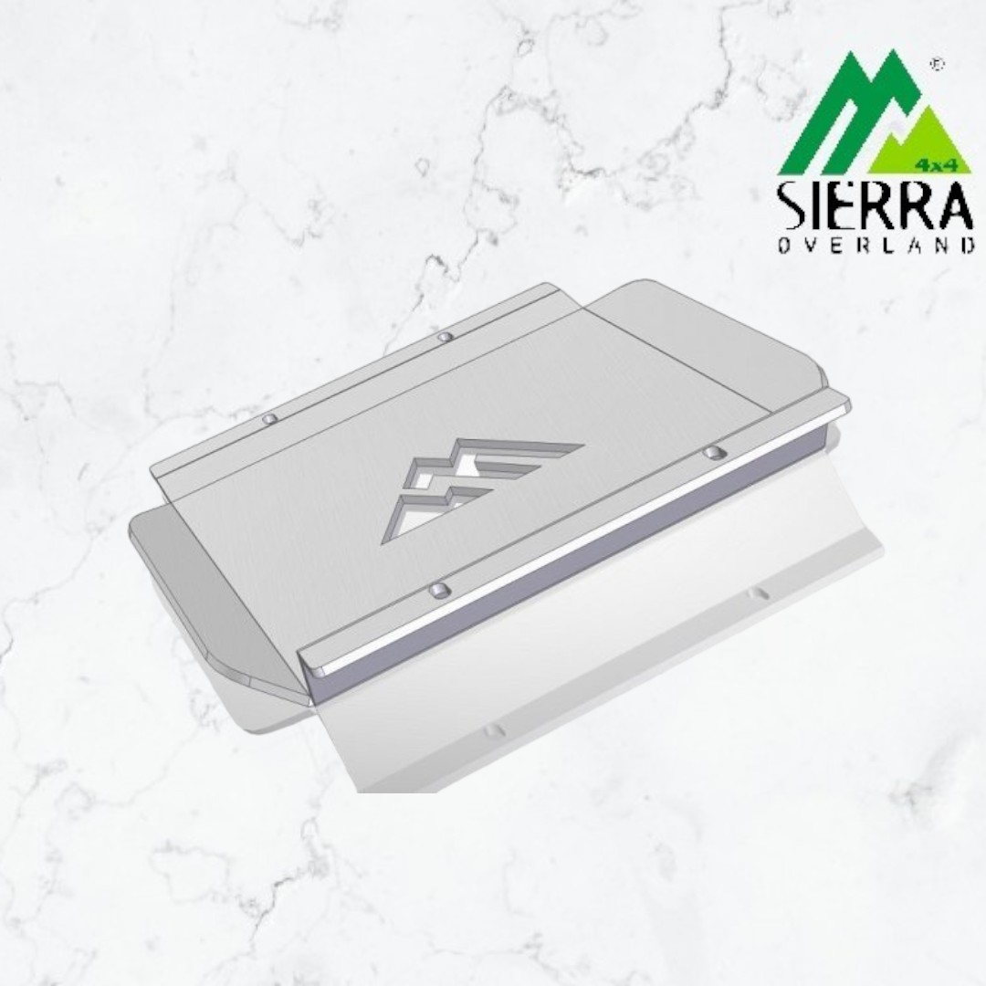 Protector fabricado en aluminio de 8mm de alta dureza plegado con control numerico y cortado por láser. Protege la caja transfer de los impactos de las piedras y las ramas