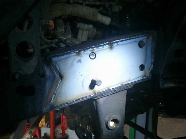 Este refuerzo se suelda sobre el chasis en la zona donde se ancla la caja de dirección. Es una zona sometida a muchos esfuerzos y tiene tendencia a agrietarse. Con este refuerzo distribuimos el esfuerzo en una zona más amplia y damos más resistencia al área de la caja de dirección.