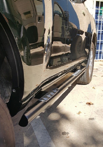 Nuestras taloneras laterales están fabricadas en tubo estructural de 70mm de diámetro y van sujetas directamente al chasis con placas soldadas al mismo y luego atornilladas a las placas, por lo que son apropiadas para levantar el coche con el gato Hi-Lift.