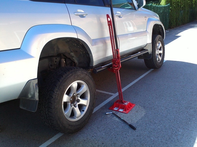 Nuestras taloneras laterales están fabricadas en tubo estructural de 70mm de diámetro y van sujetas directamente al chasis con placas soldadas al mismo y luego atornilladas a las placas, por lo que son apropiadas para levantar el coche con el gato Hi-Lift.