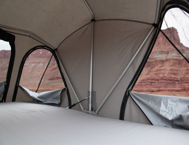 La tienda de campaña James Baroud Vision es de apertura hidráulica en forma de libro con un sistema pionero semiautomático. A diferencia de otras de este estilo, se abre casi tan rápido y fácilmente como las de cubierta rígida. Es un ejemplo de inovación y evolución, ya que es la tienda de lona más ligera del mercado (alrededor de 45 kg). Y a pesar de su estilo más clásico en forma de iglú, cuenta con destacados detalles de confortabilidad y la misma calidad de materiales que las otras tiendas de la marca. Se encuentra en 2 tallas exclusivas, con una XL con capacidad para 4 personas.